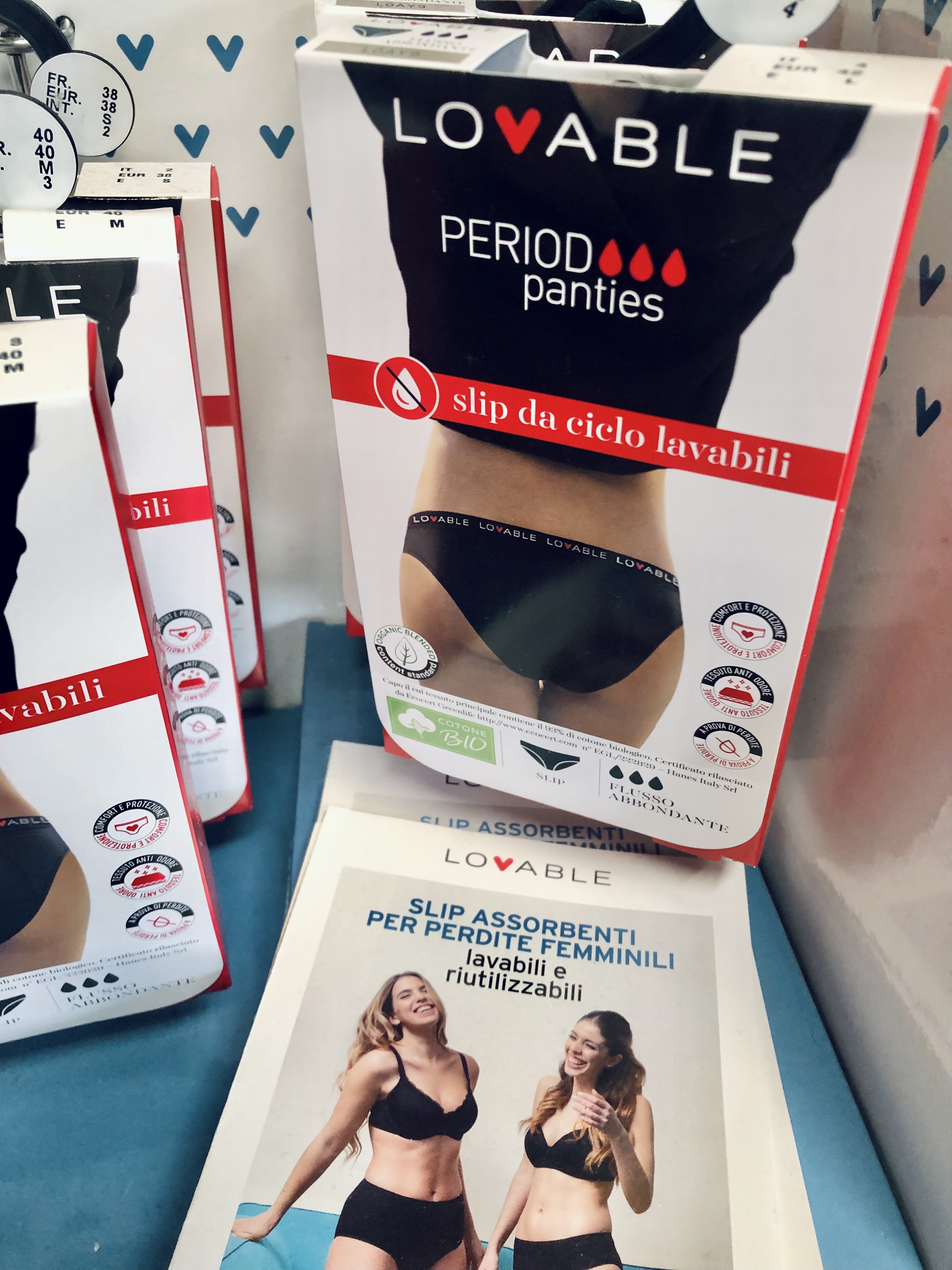 Slip Lovable da ciclo lavabili per flusso abbondante costituiti da 3 strati a prova di perdite: un primo morbido tessuto in cotone biologico che filtra e trattiene liquidi, uno strato intermedio assorbente, uno strato finale impermeabile ed infine un tessuto esterno che neutralizza gli odori.