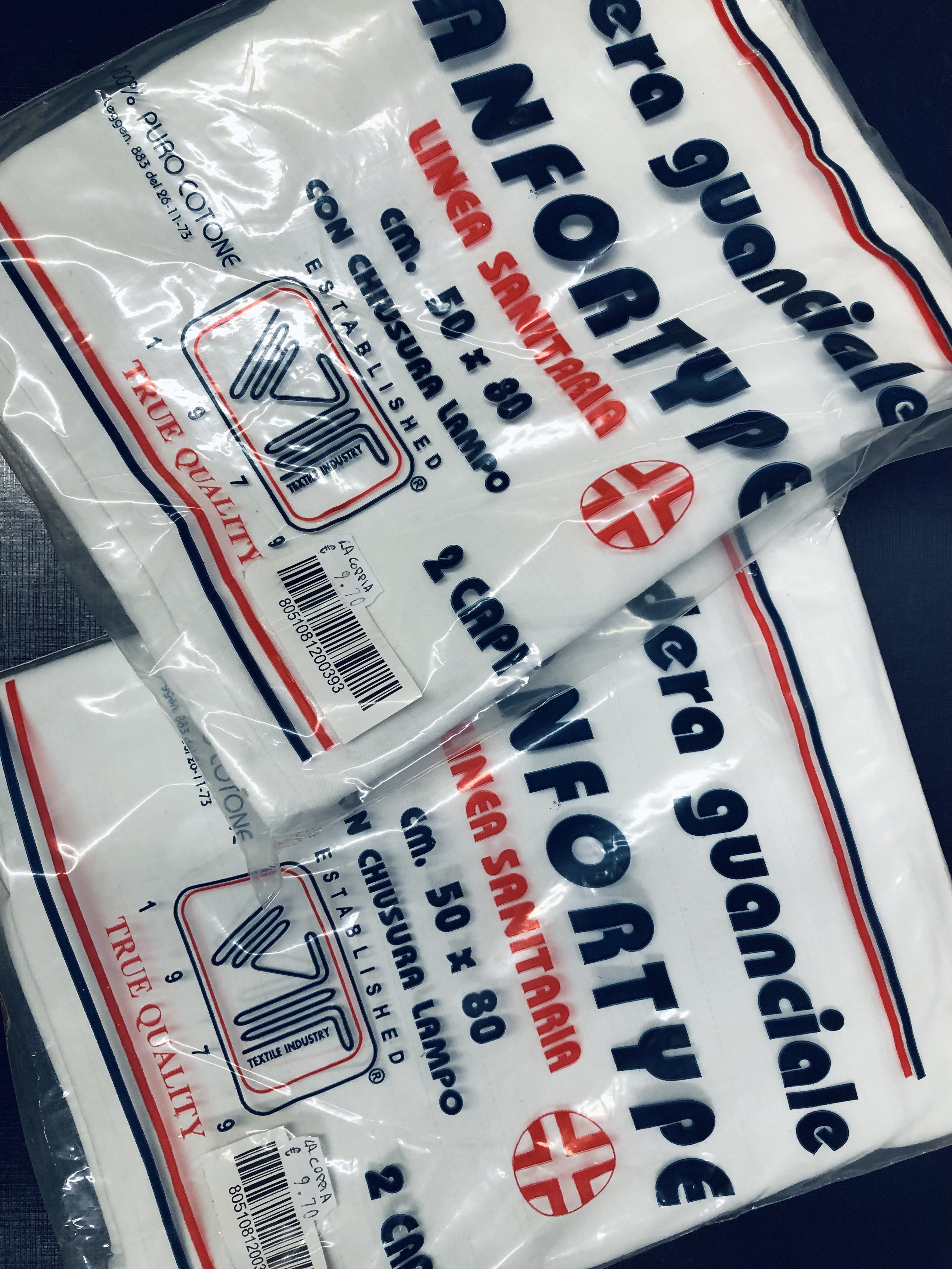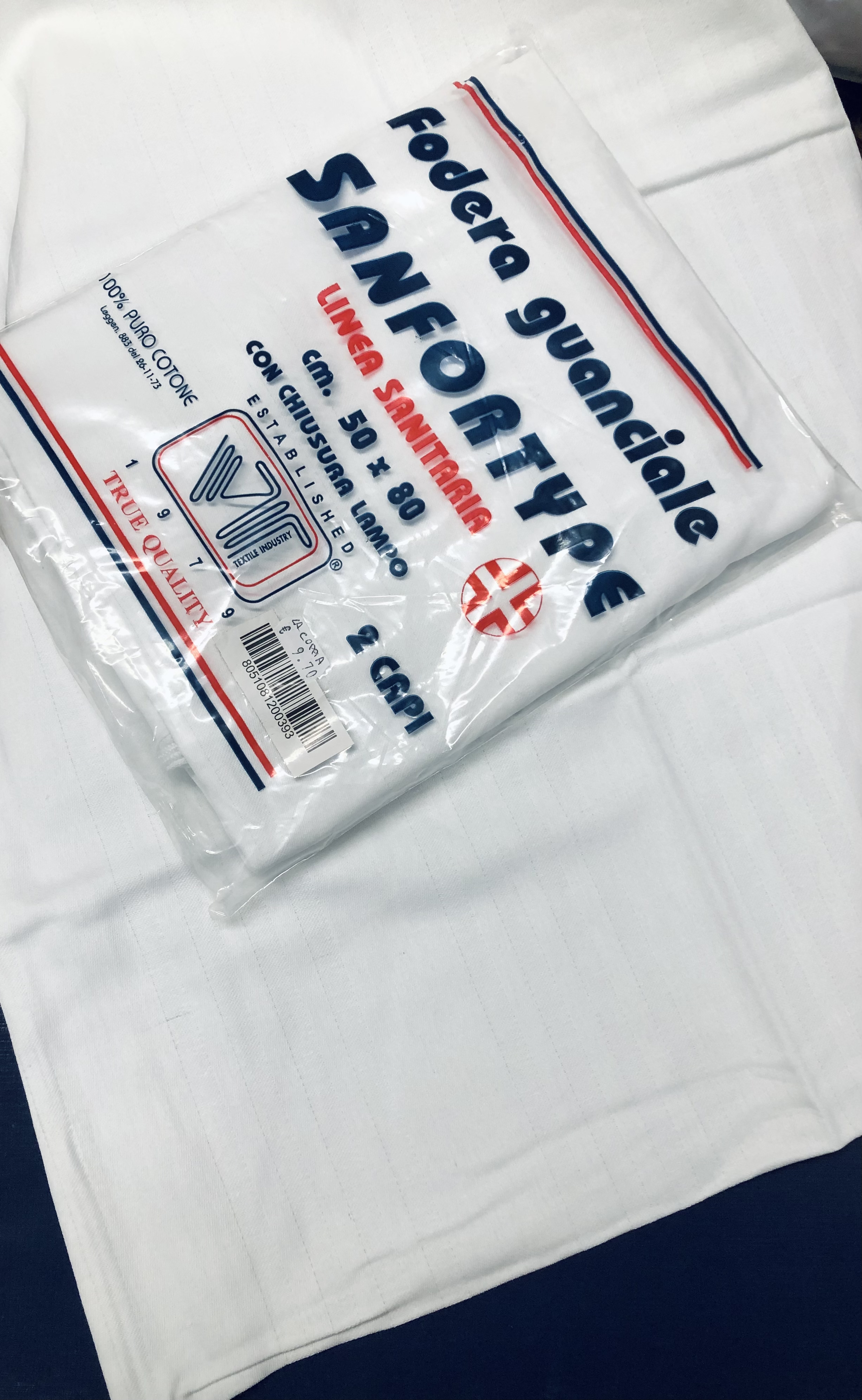 Coppia di fodere per guanciale Sanforty. Linea sanitaria 50x80cm con chiusura lampo. 100% puro cotone.