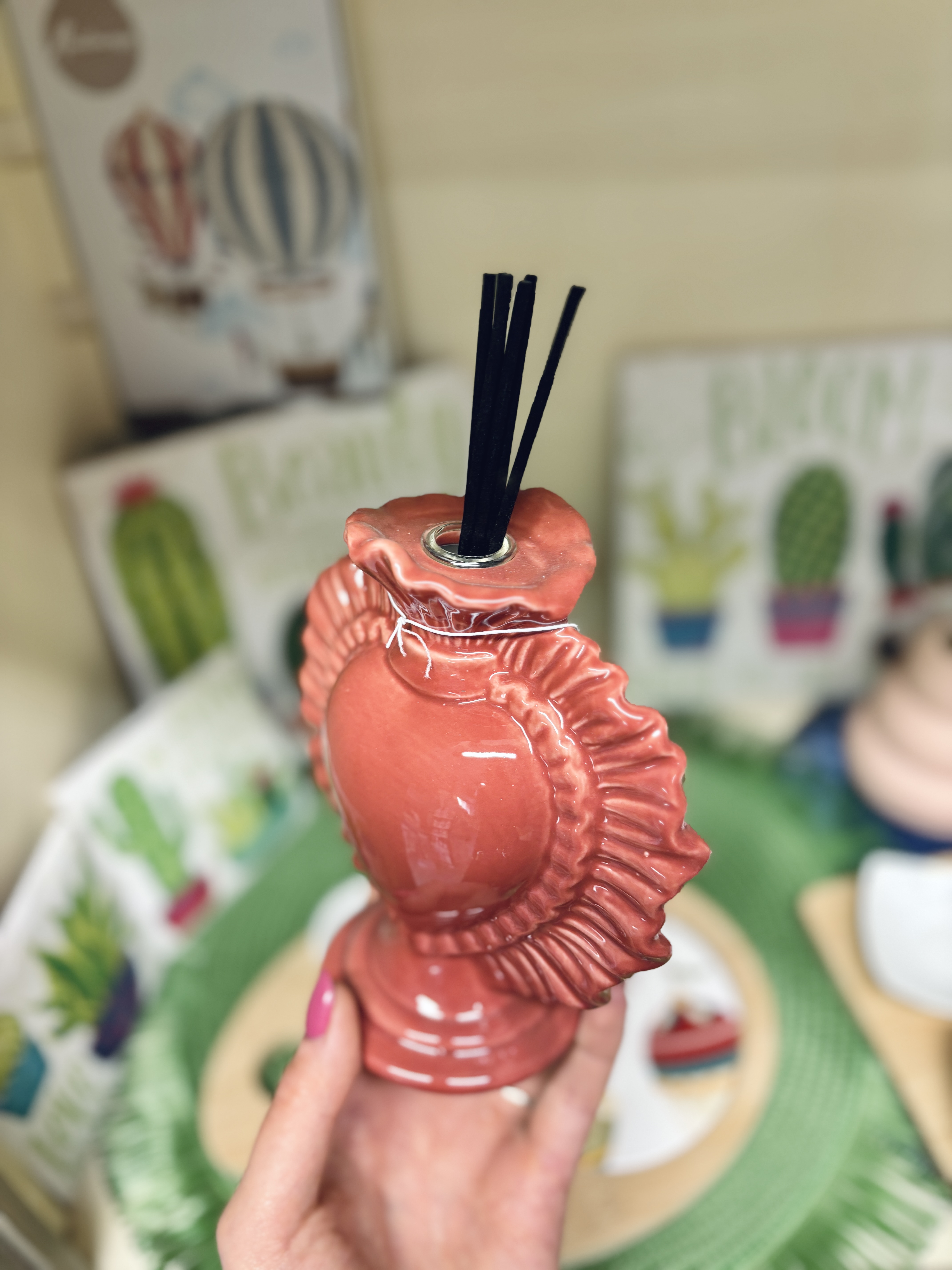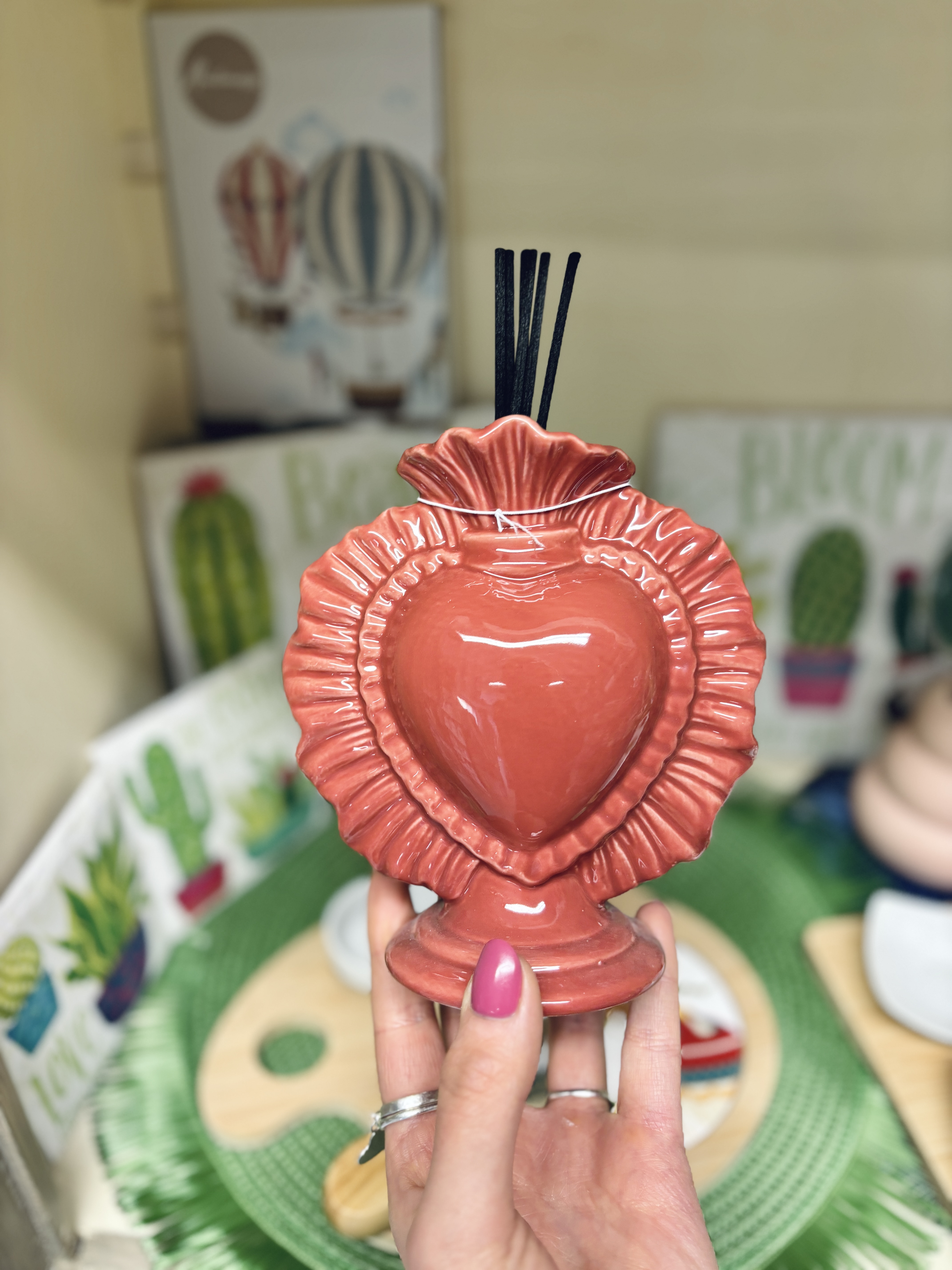 Profumatore Sacro Cuore in ceramica con tappino e bastoncini all'interno