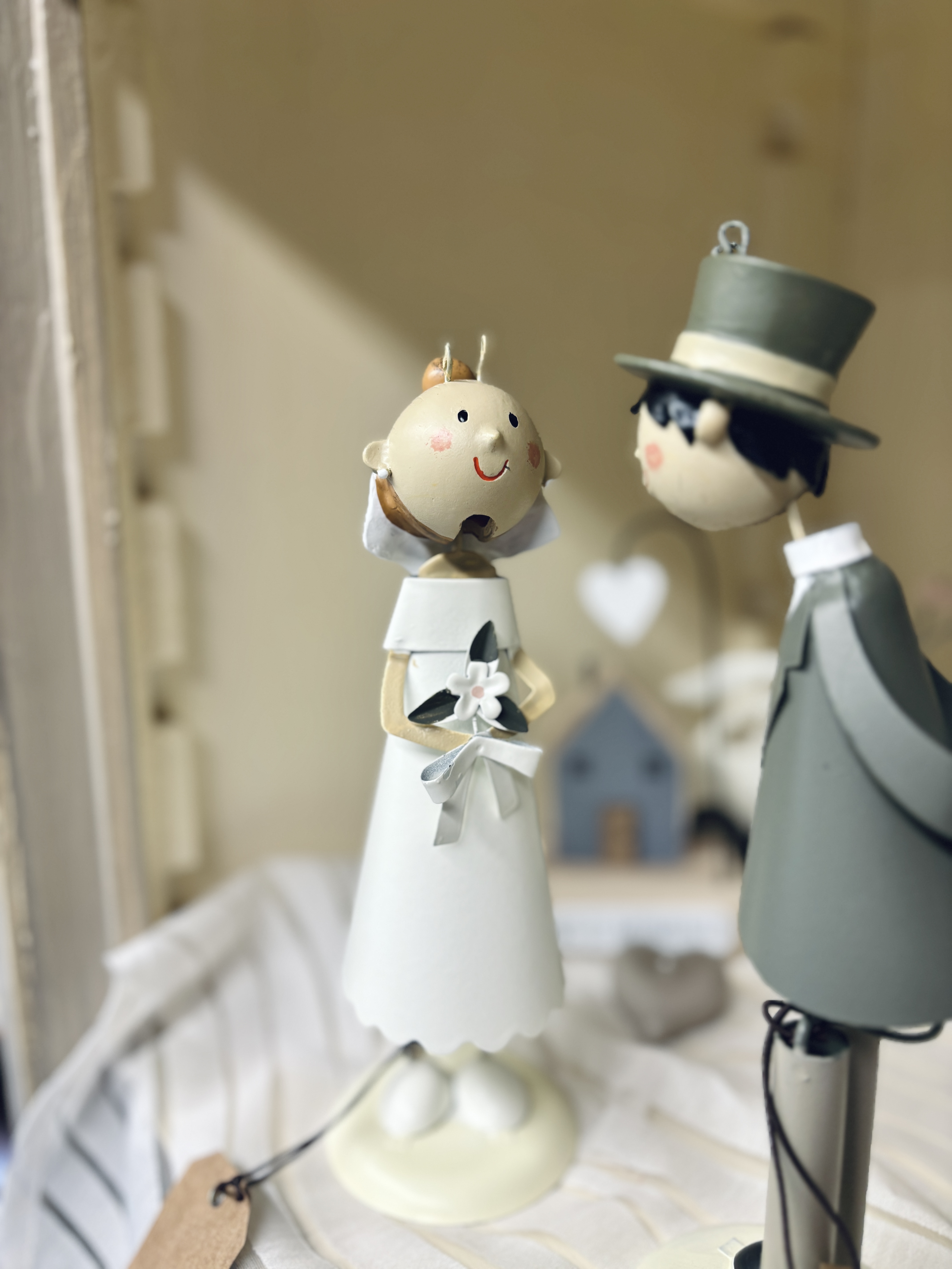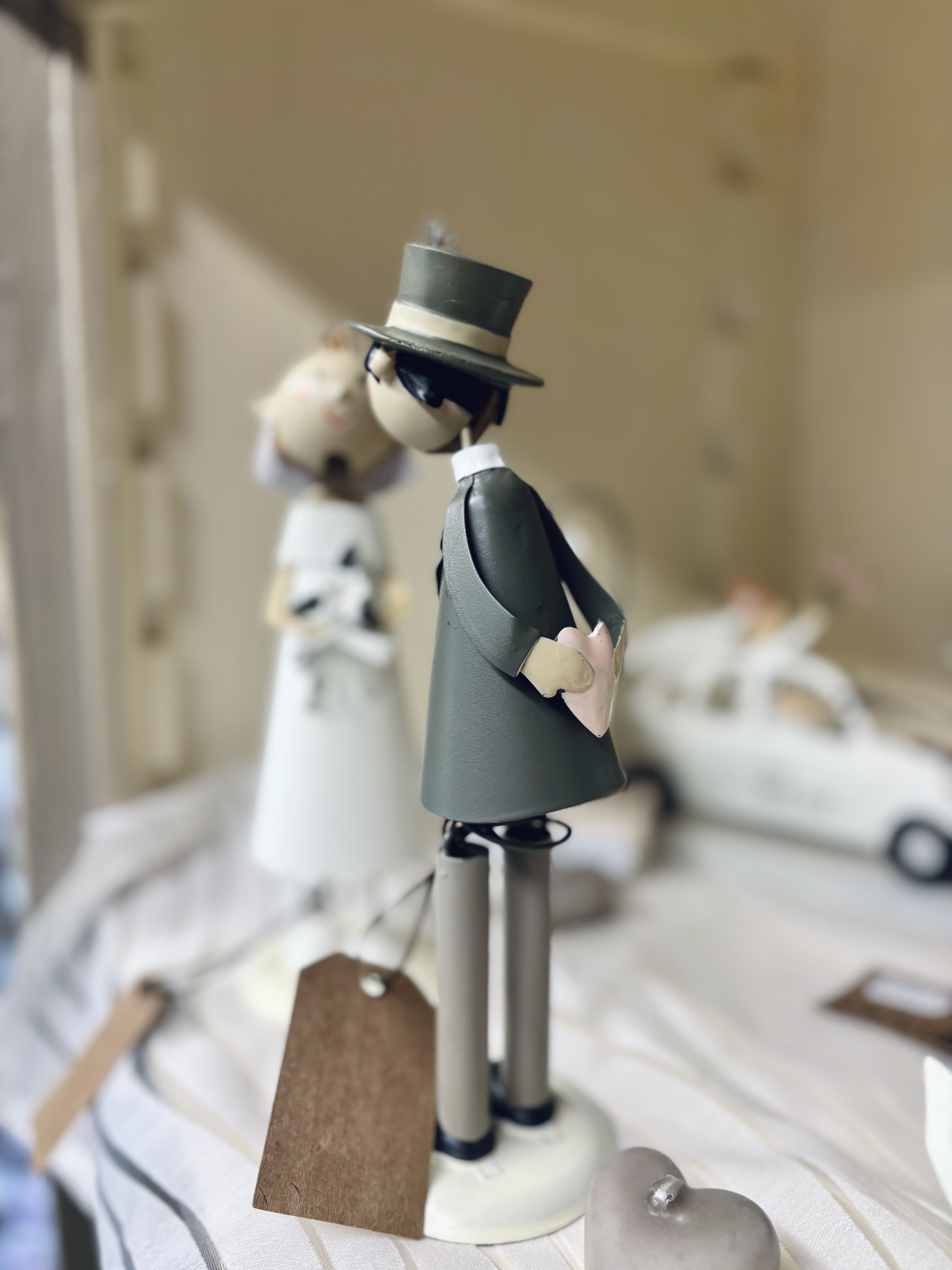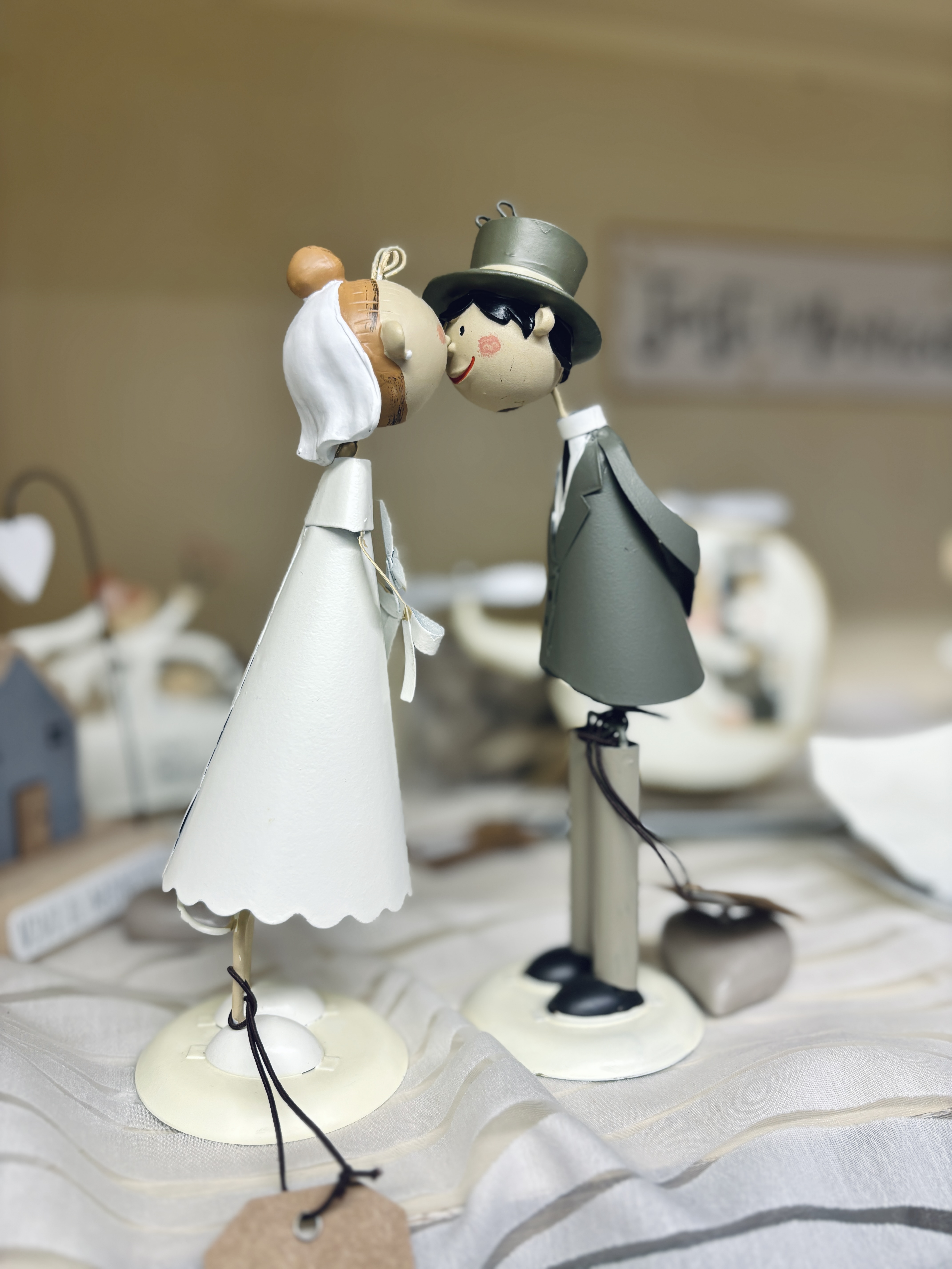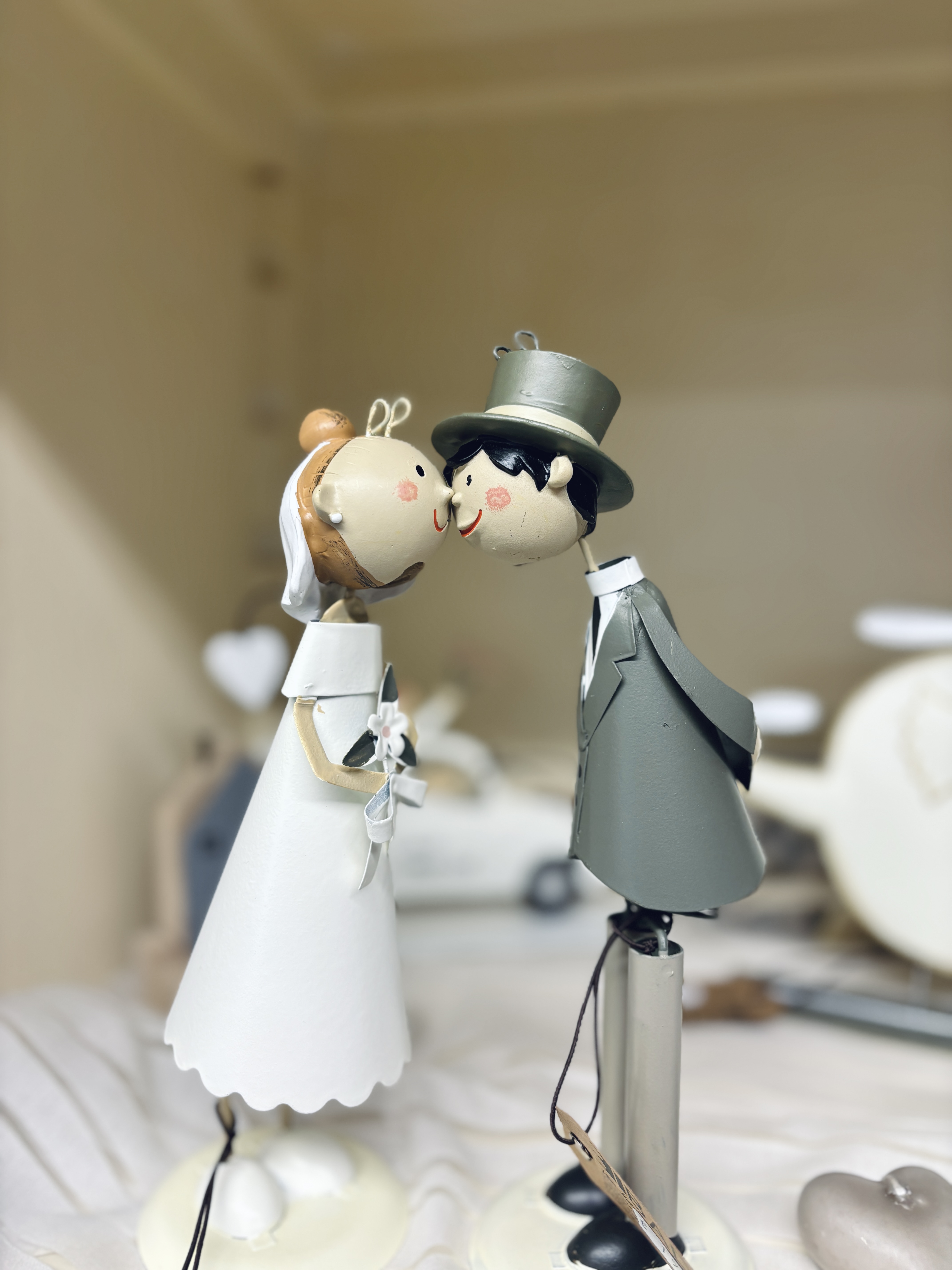 Coppia sposi con calamita che li tiene uniti in un bacio