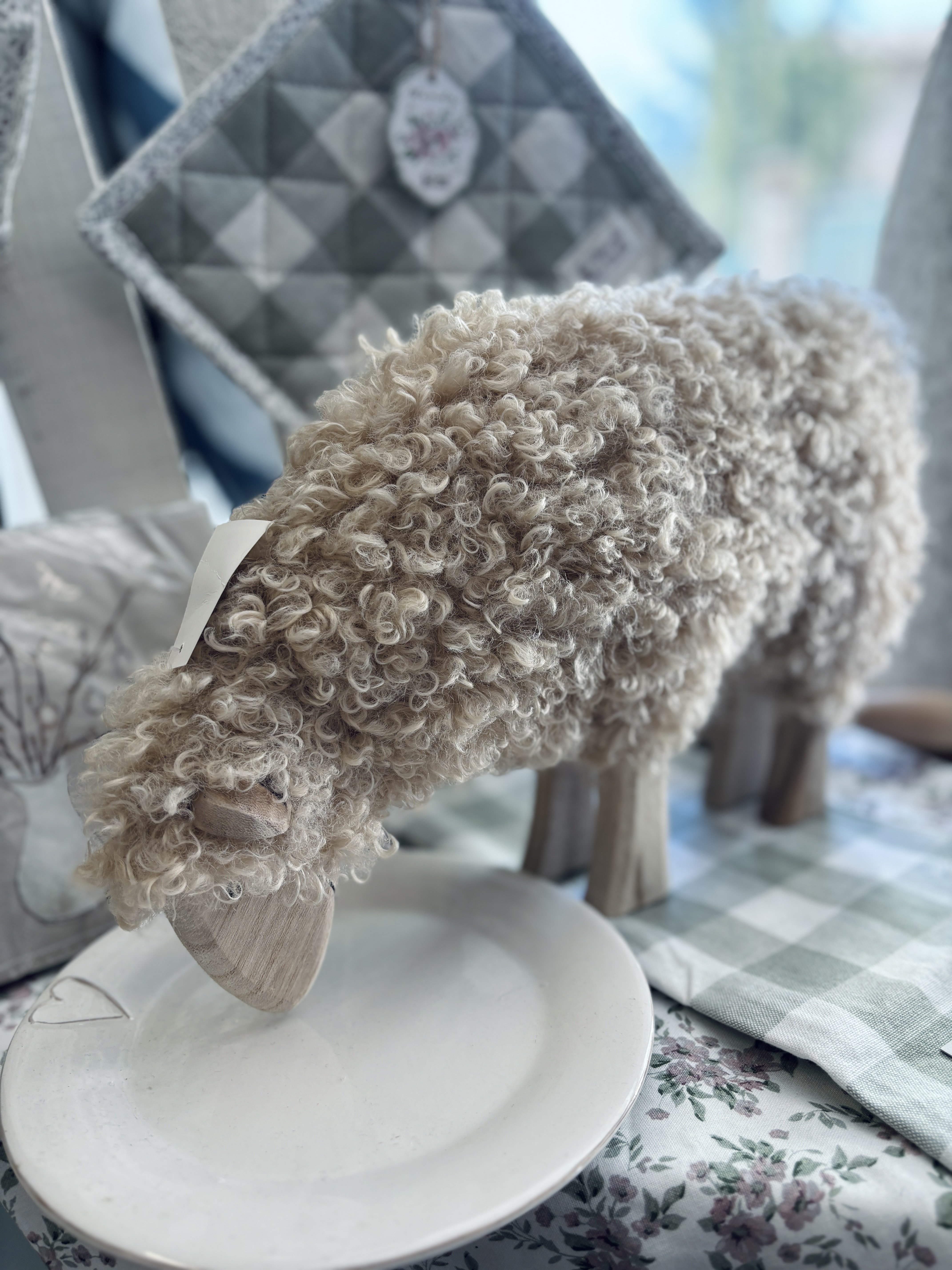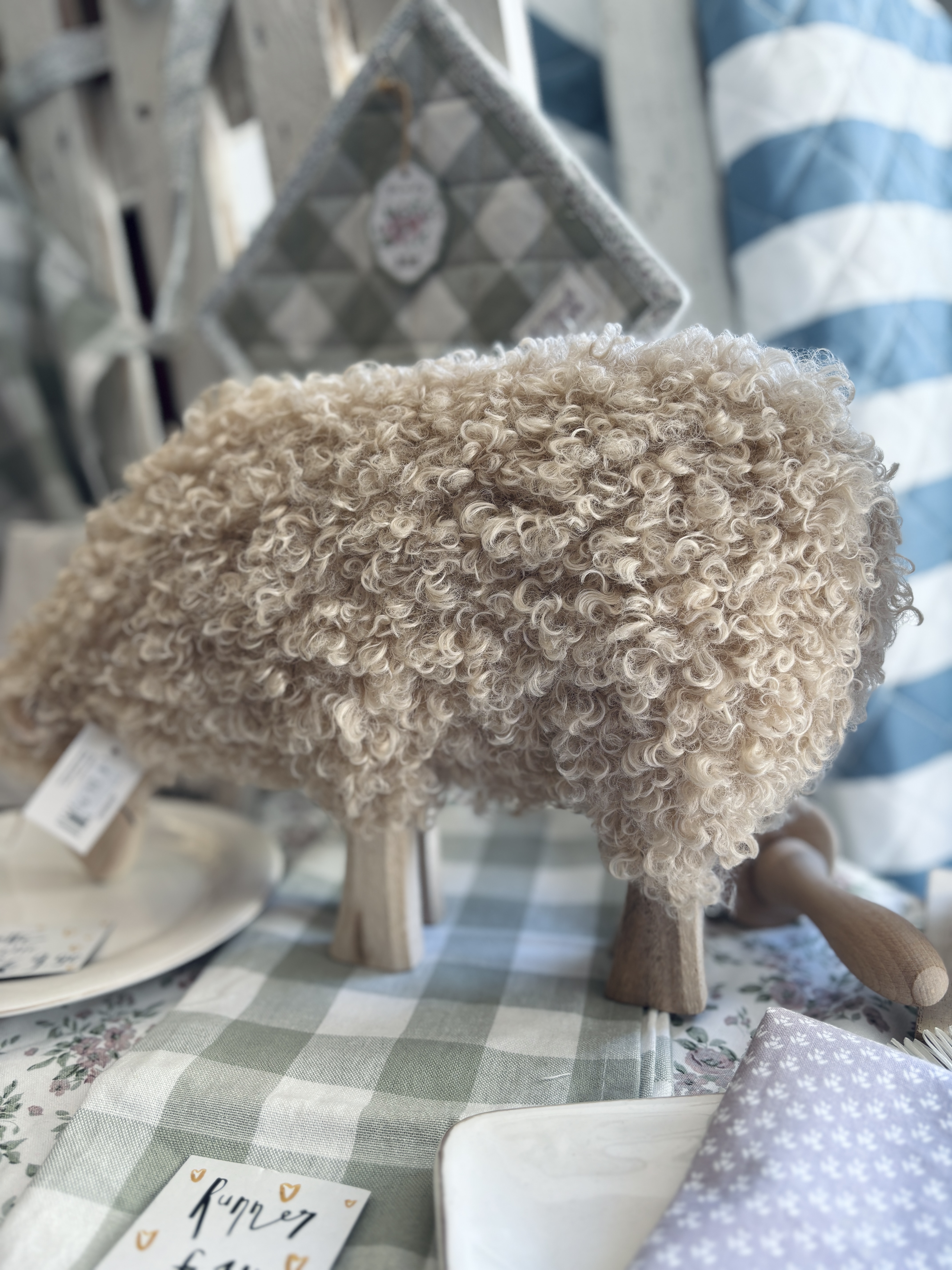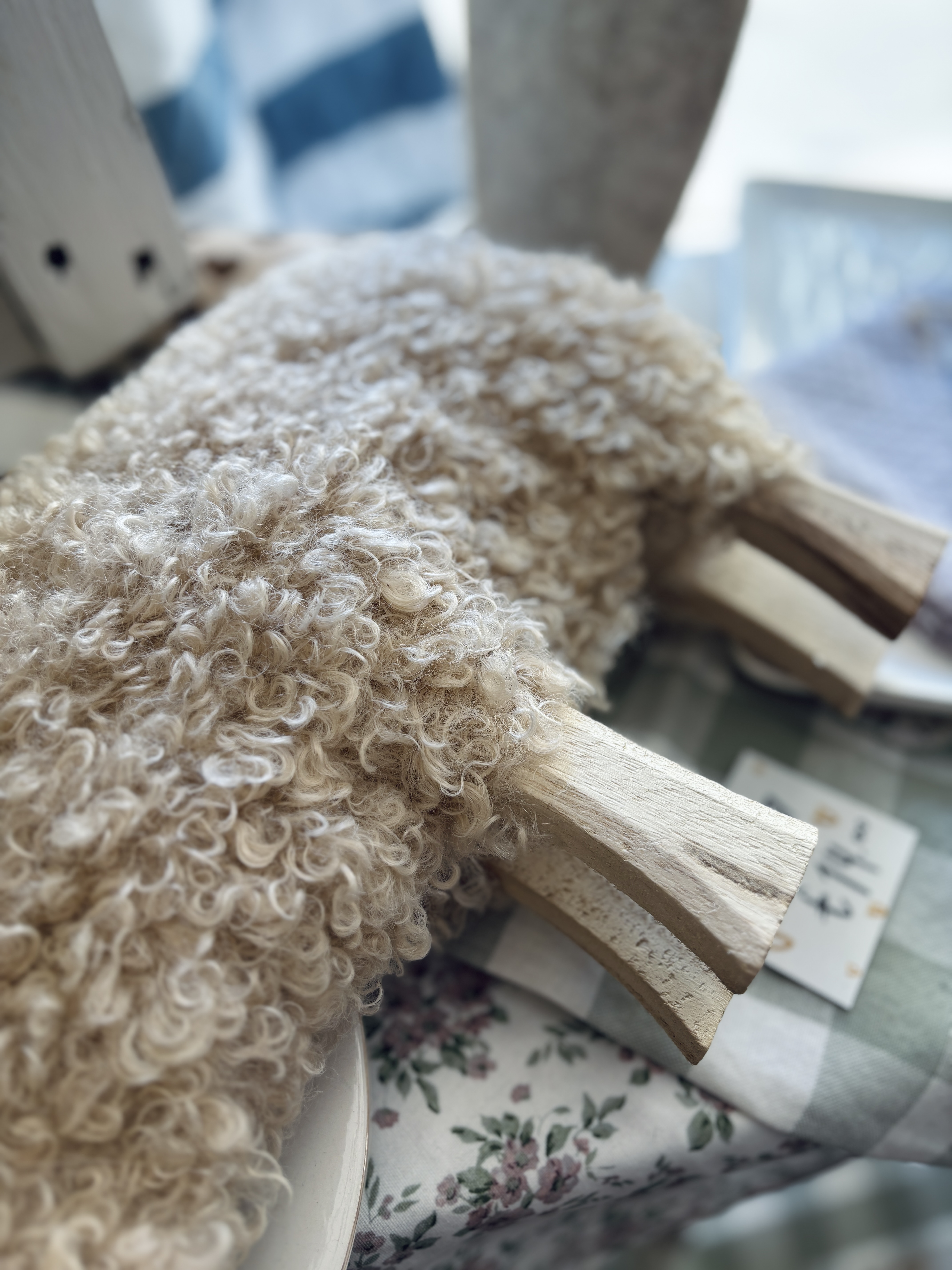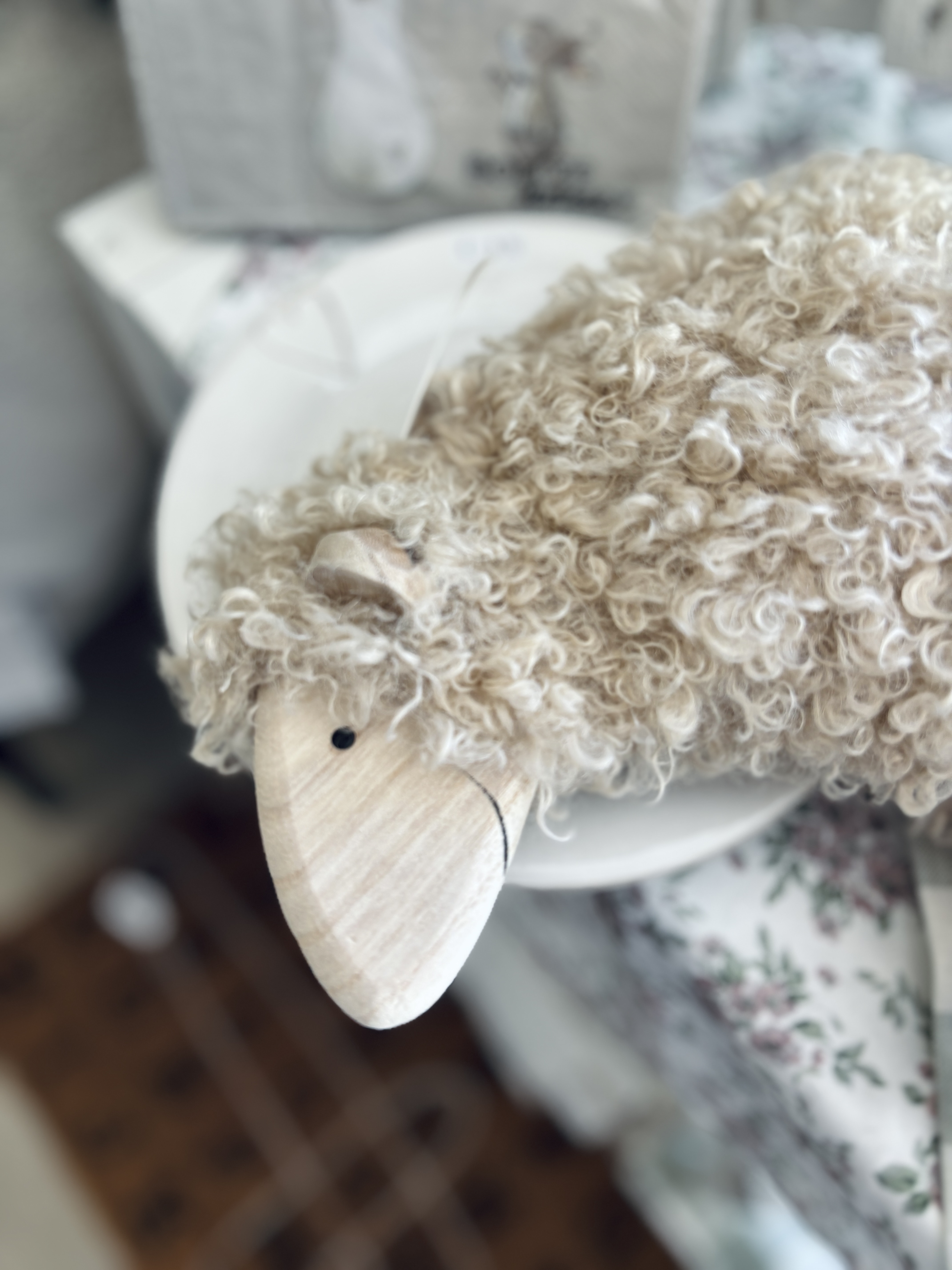 Pecora in legno con manto peloso