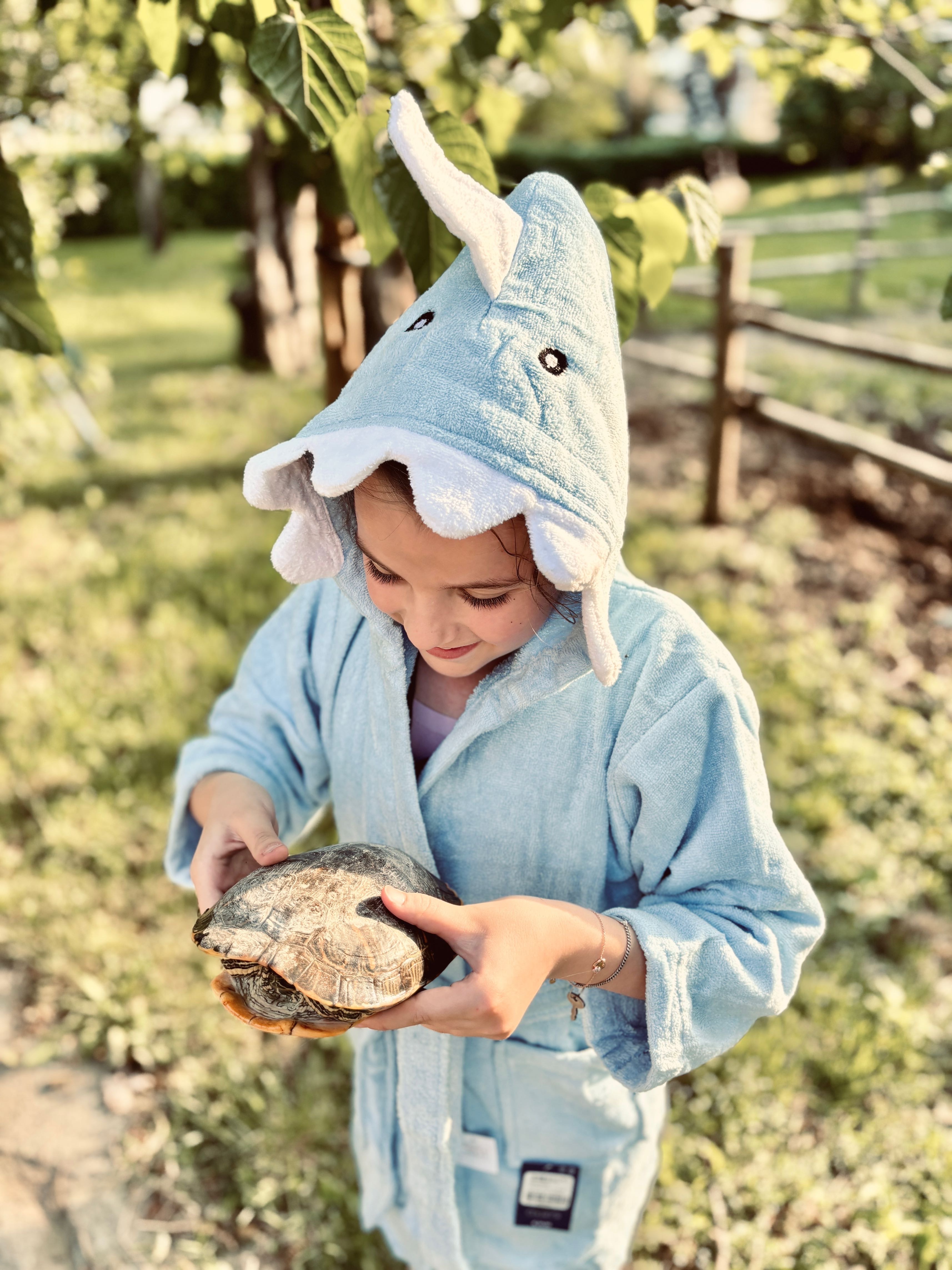 Accappatoio in spugna con tasche frontali, cintura in vita e dettaglio cappuccio animale
