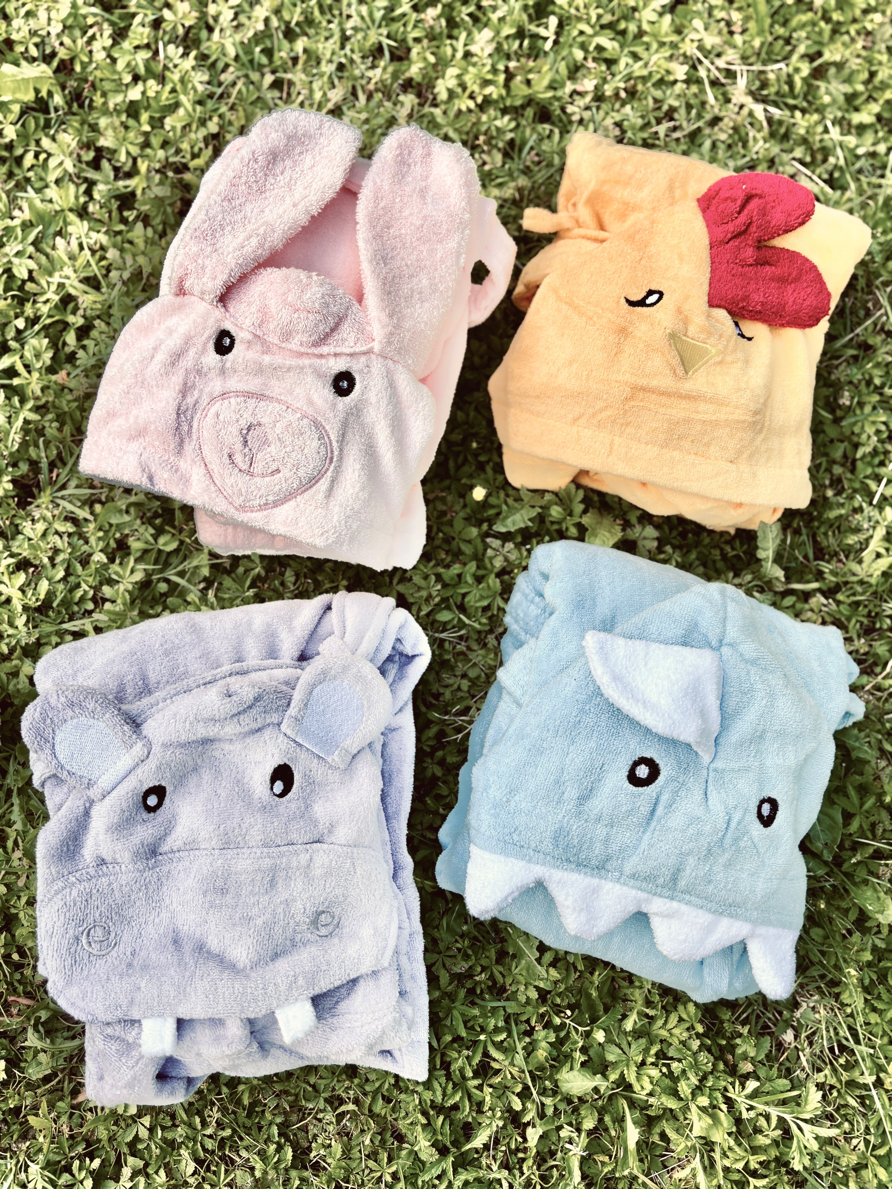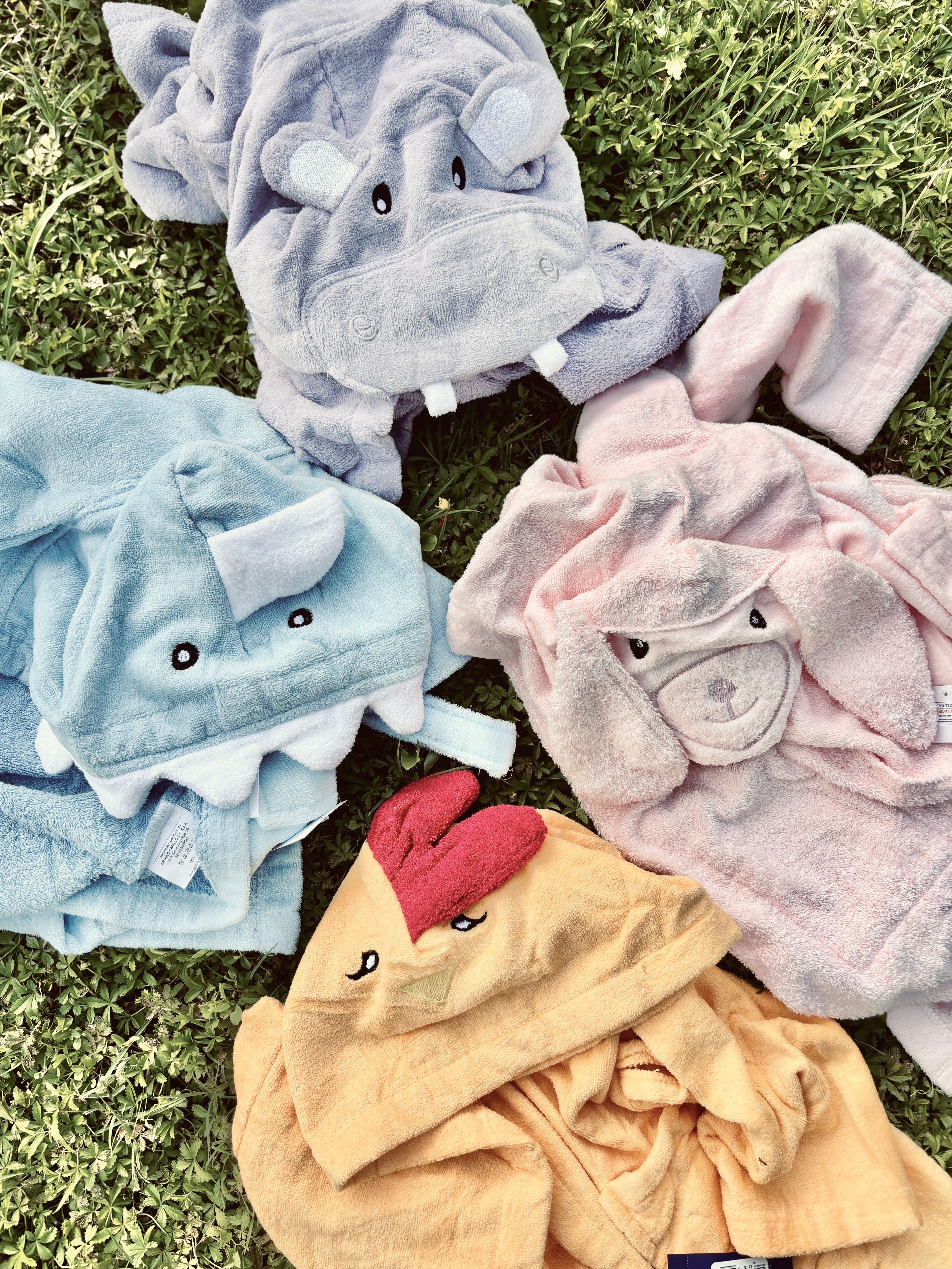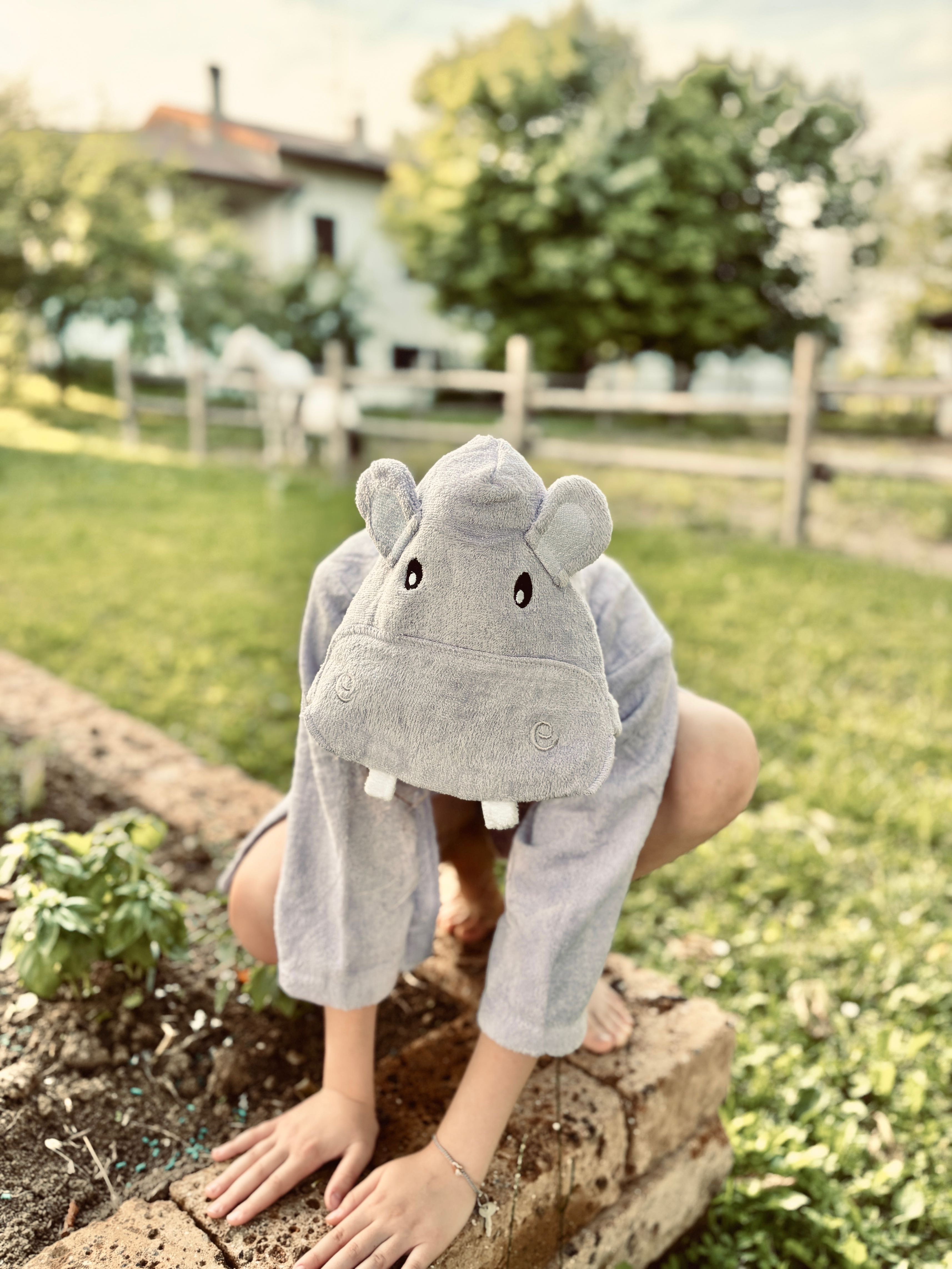 Accappatoio in spugna con tasche frontali, cintura in vita e dettaglio cappuccio animale