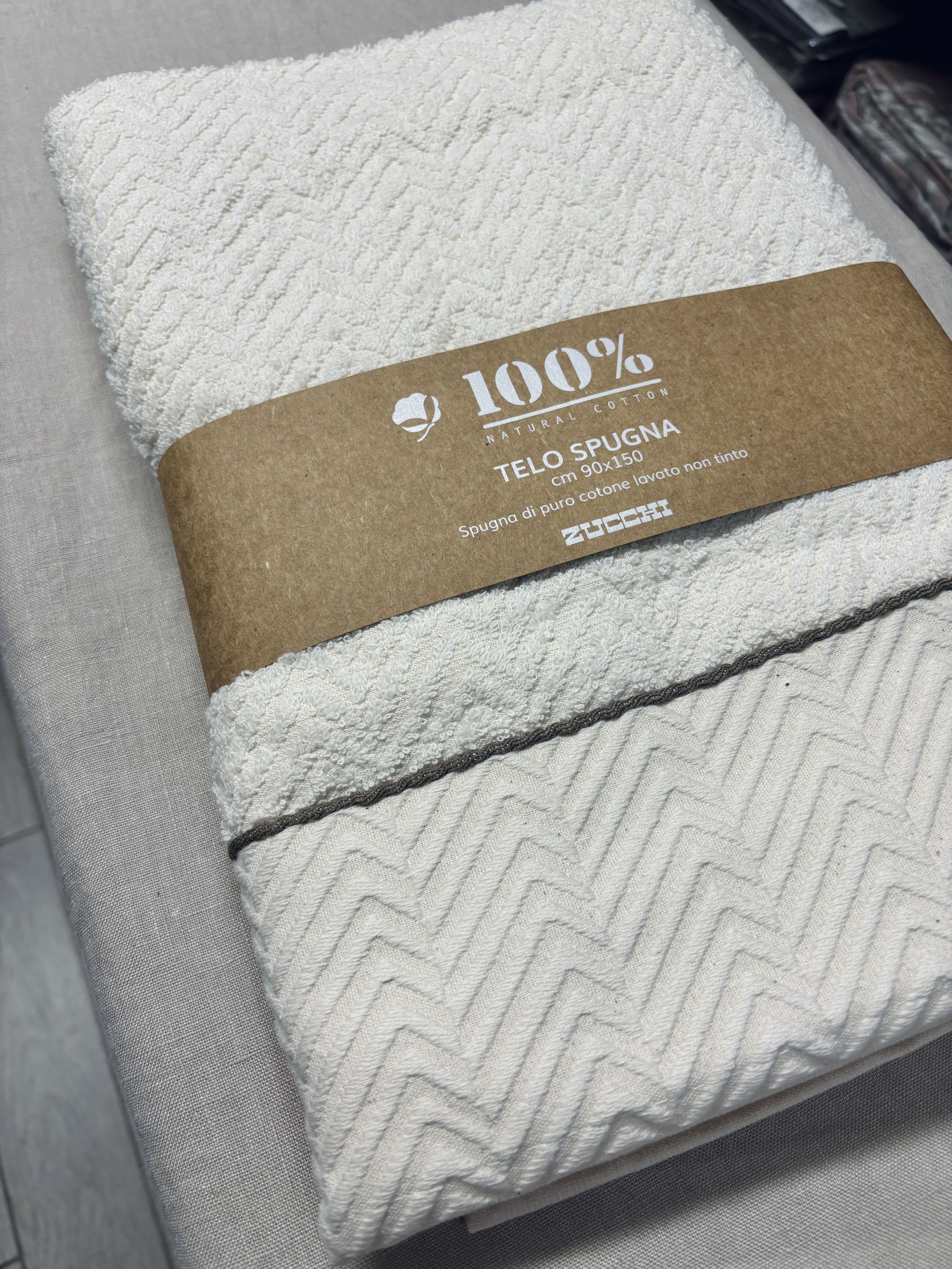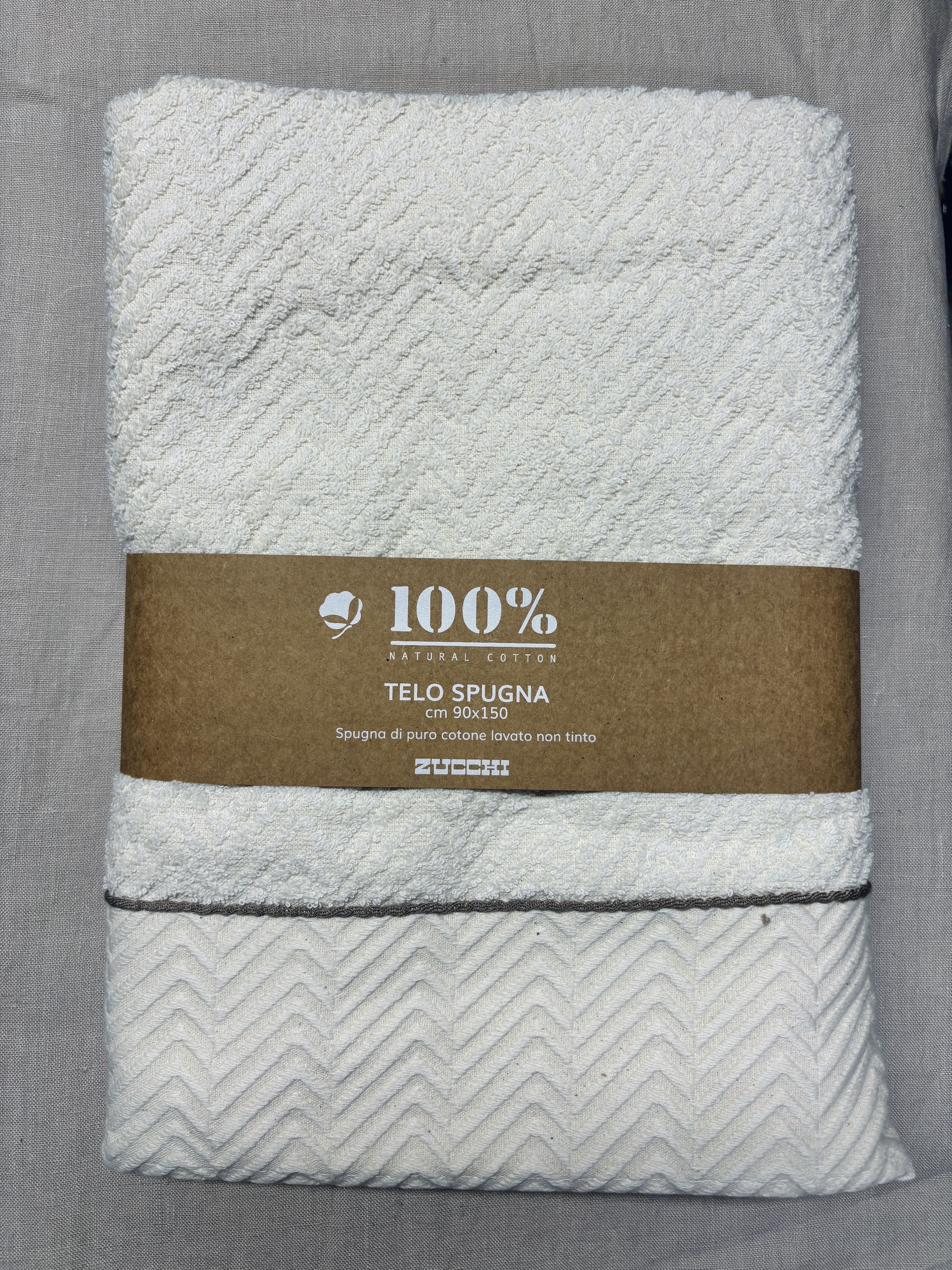 Telo bagno 90x150cm. Linea in 100% spugna di cotone naturale lavato non tinto.