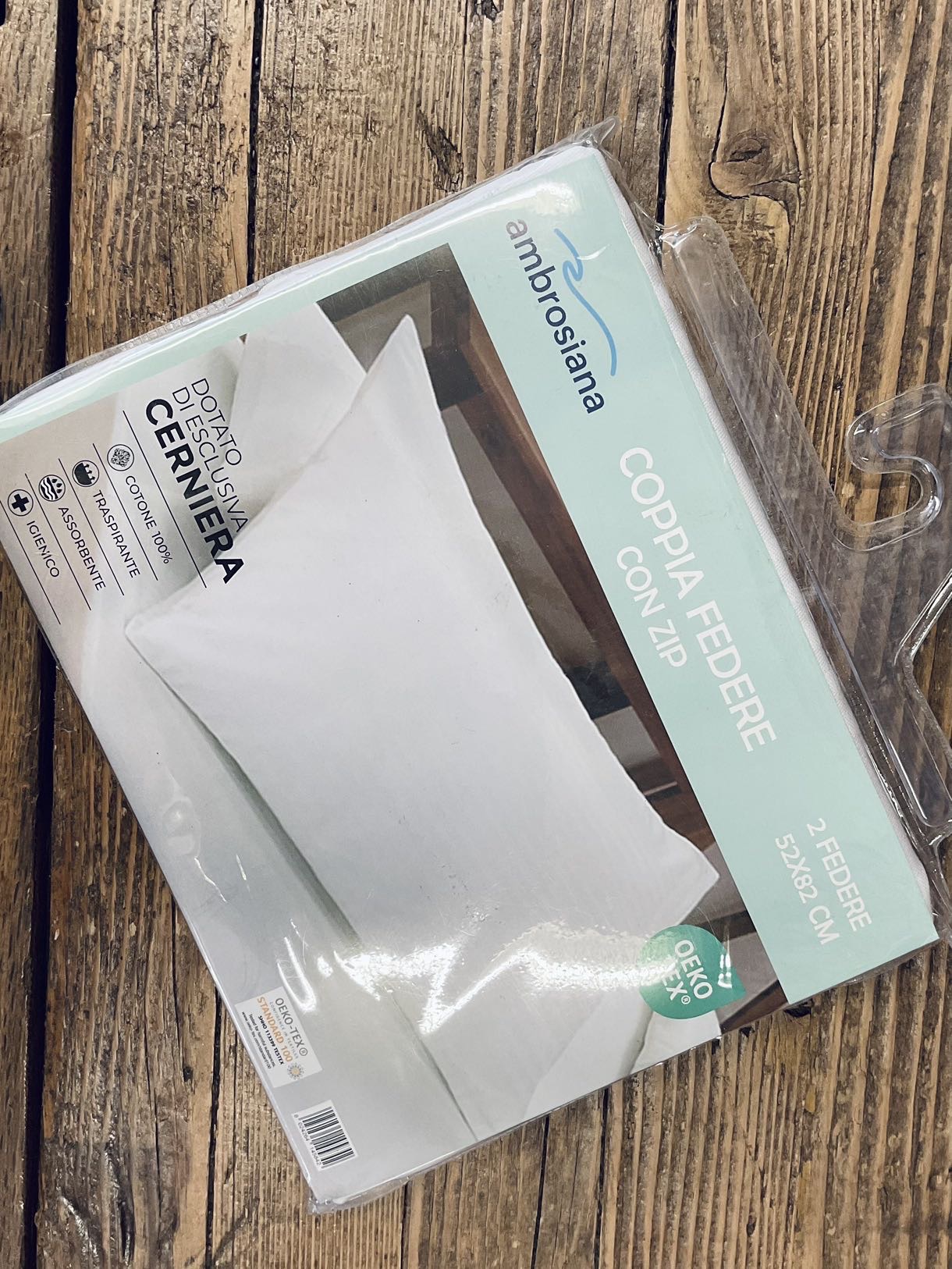 Coppia federe copri cuscino in 100% cotone. 50x80 con chiusura con zip. Traspirante, assorbente, igienico.