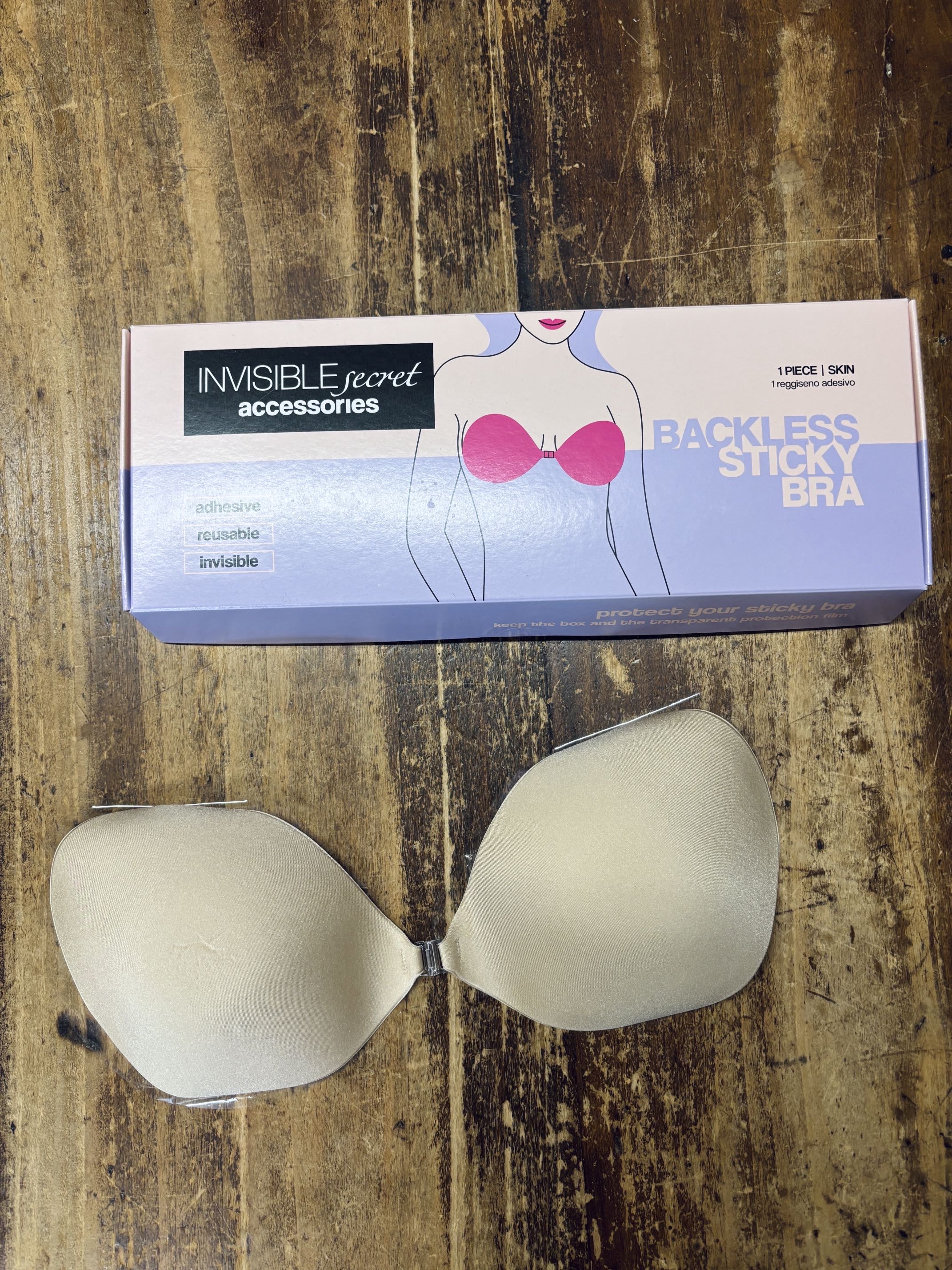 Coppette reggiseno adesive dal sostegno discreto e con clip centrale da potere sganciare e posizionare a preferenza in base al tipo di scollatura dell'abito.