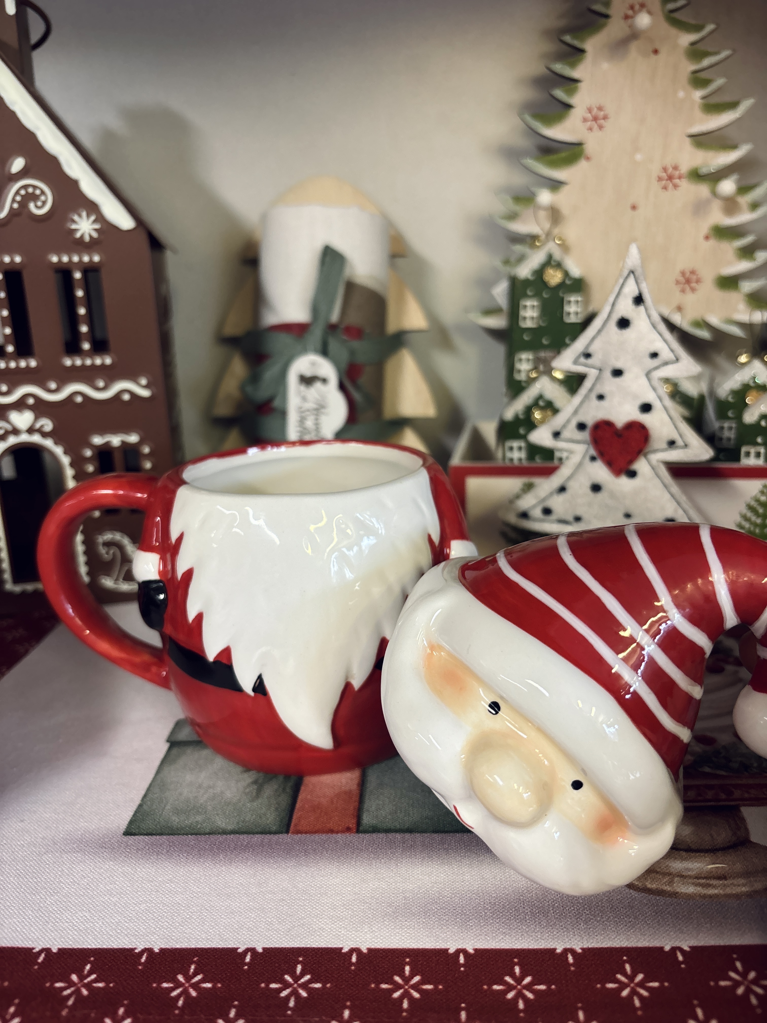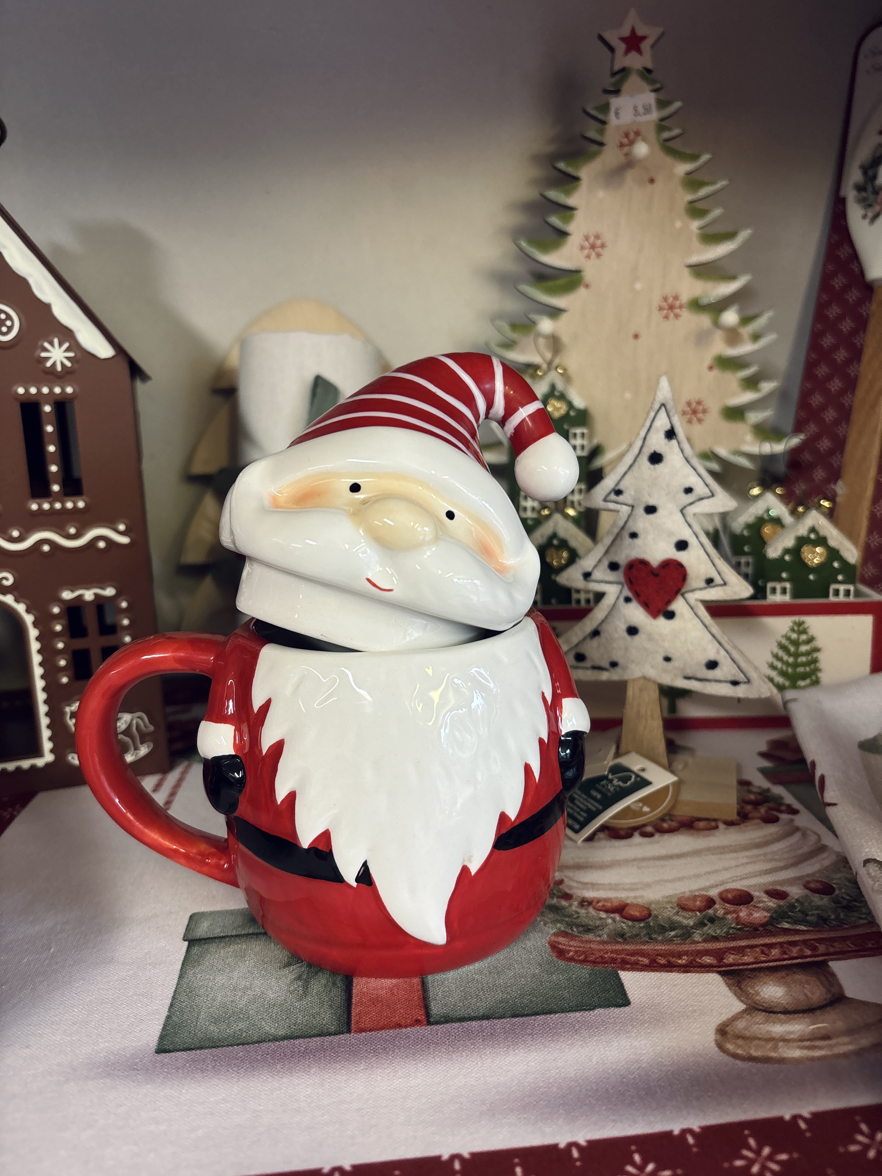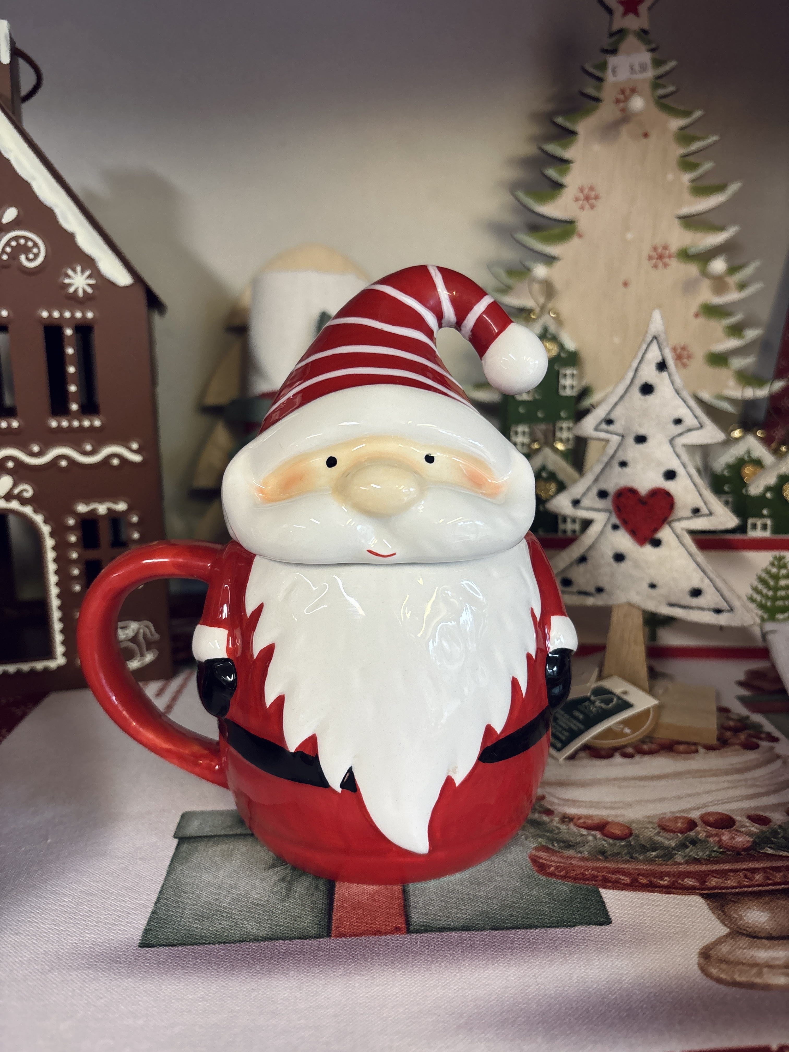 Tazza in ceramica con coperchio cappello Santa Claus
